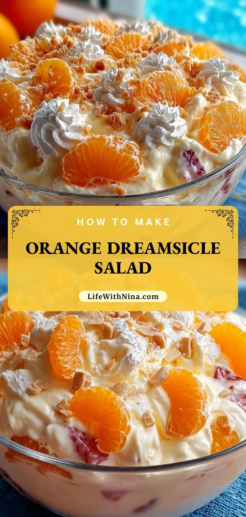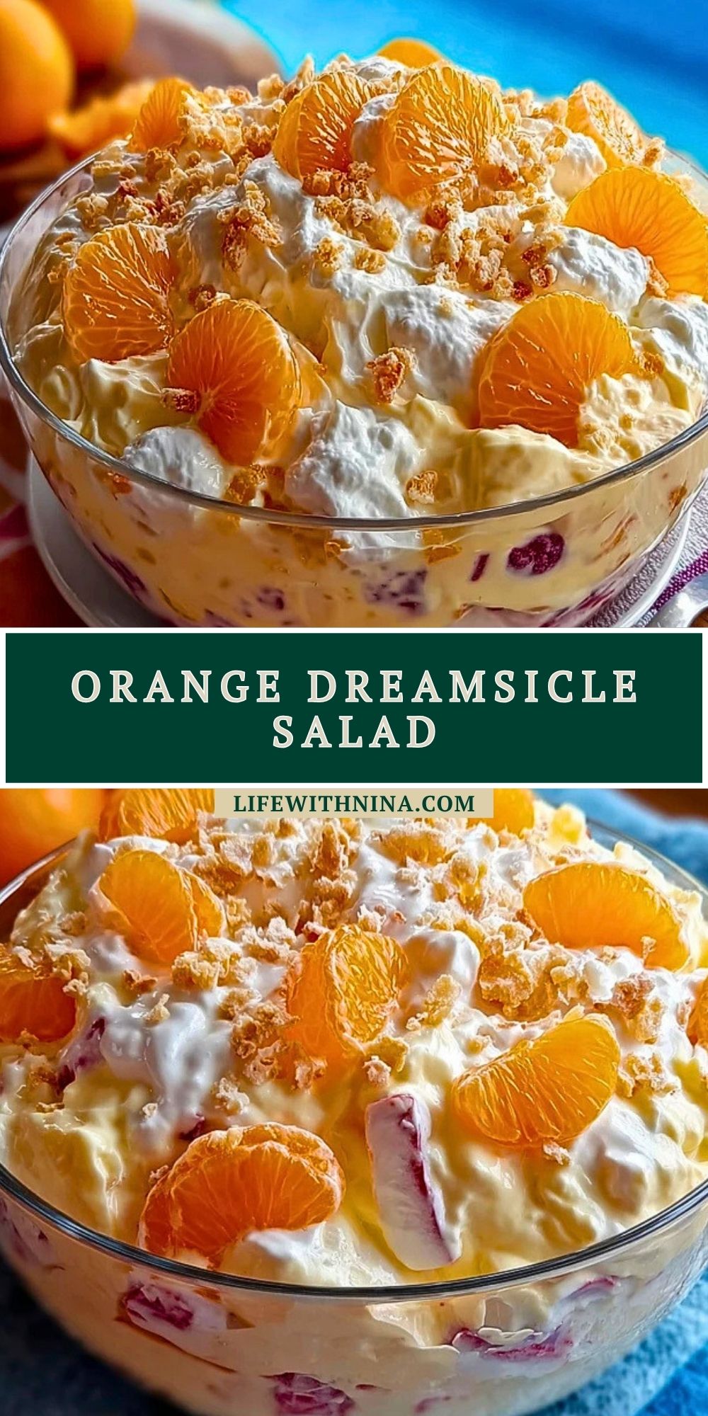 Orange Dreamsicle Salad is best served cold, straight from the fridge. It’s ideal for BBQs, brunches, or as a light dessert after a hearty meal. Store any leftovers in an airtight container in the refrigerator for up to 3 days. Because of the dairy and fruit, it’s not freezer-friendly—stick to the fridge to keep it fresh.