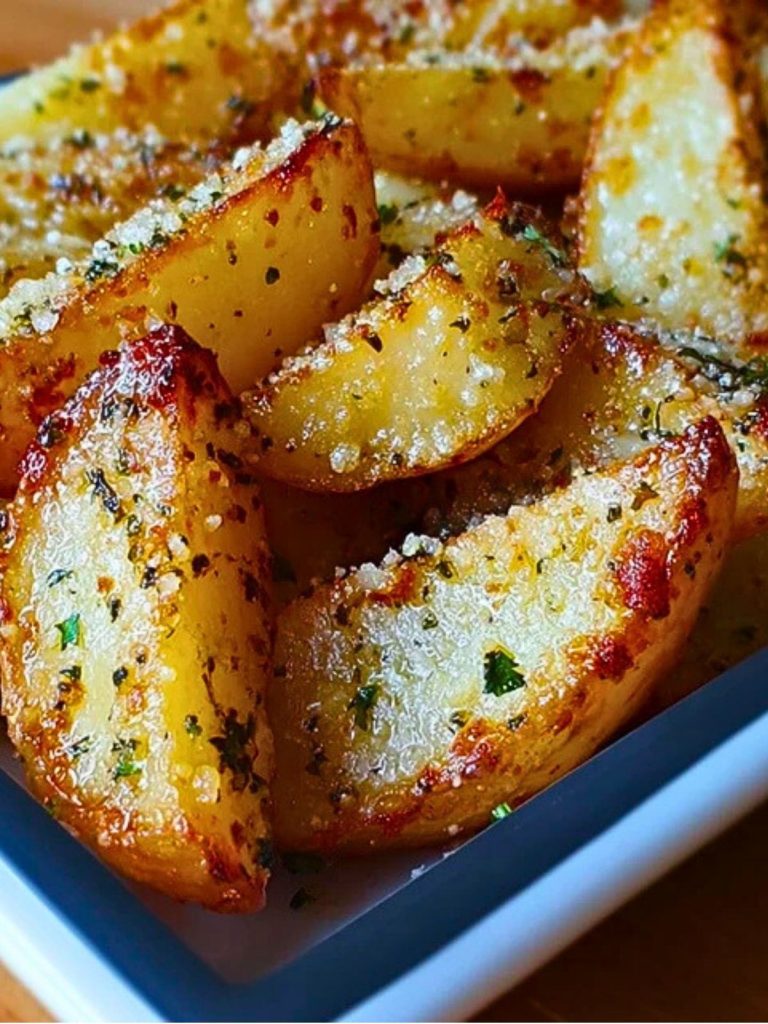 Keywords: parmesan garlic potato wedges, oven baked wedges, crispy potato sides