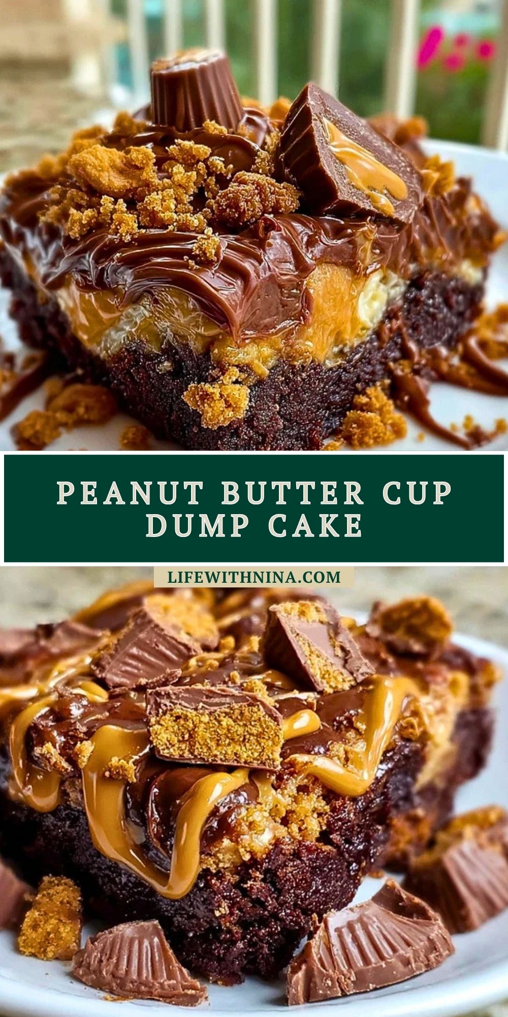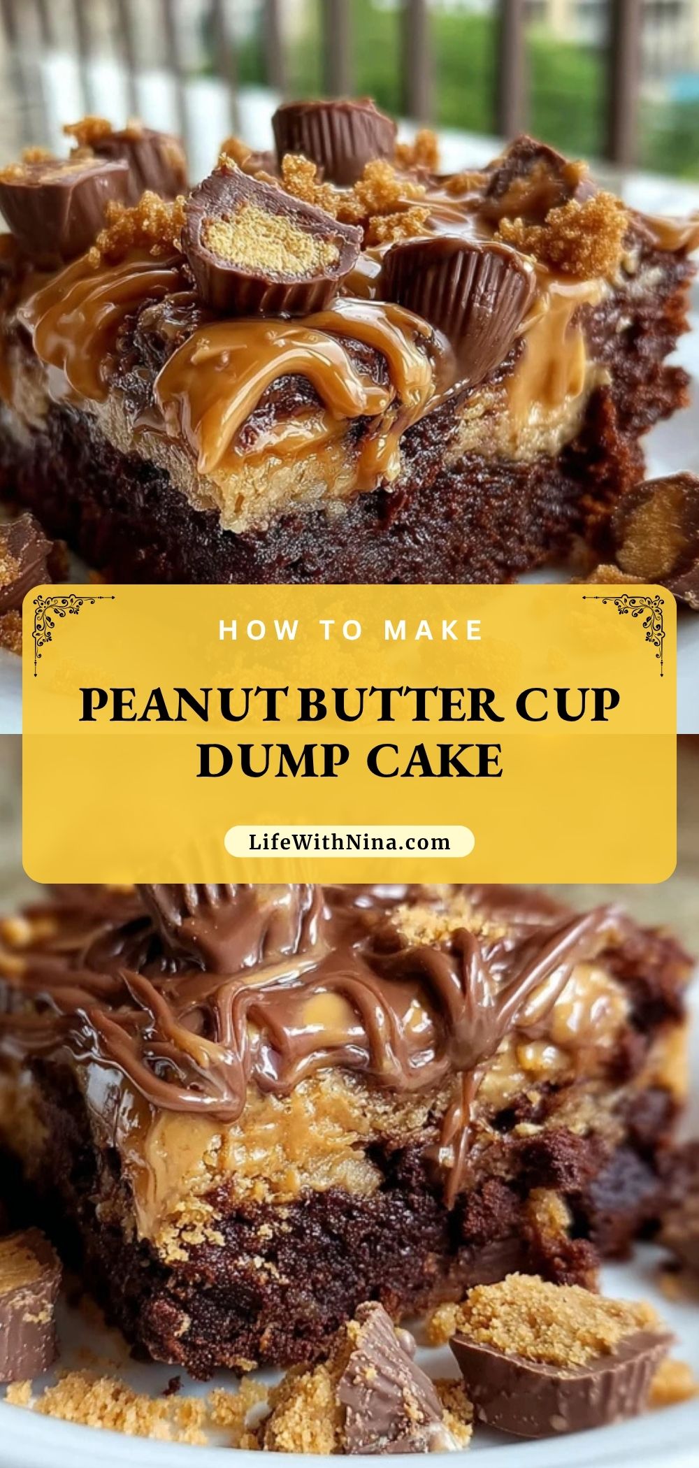 Keywords: Peanut Butter Cup Dump Cake, chocolate peanut butter dessert, easy dessert, dump cake, chocolate cake recipe, peanut butter cup recipe, party dessert, family dessert, easy baking recipe