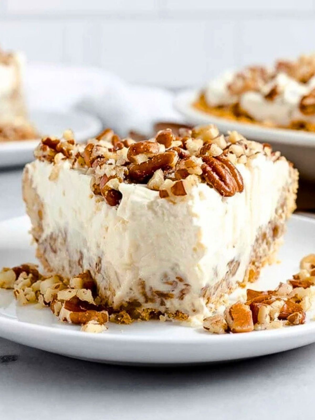 This pie is best served chilled straight from the refrigerator. For clean slices, use a sharp knife dipped in hot water and wiped dry between each cut. The cool, creamy texture and nutty topping make it an ideal make-ahead dessert for gatherings, potlucks, or cozy nights in.