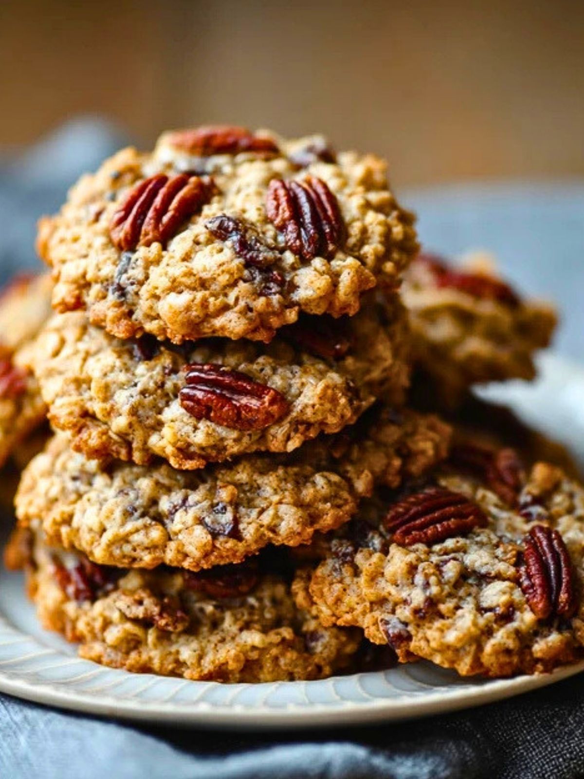 Warm, chewy, and irresistibly nutty—these Pecan Pie Oatmeal Cookies are everything you love about a classic pecan pie baked into a soft, golden cookie. The richness of toasted pecans, the warm molasses-like depth of brown sugar, and the cozy chew from oats all come together in one delicious bite.