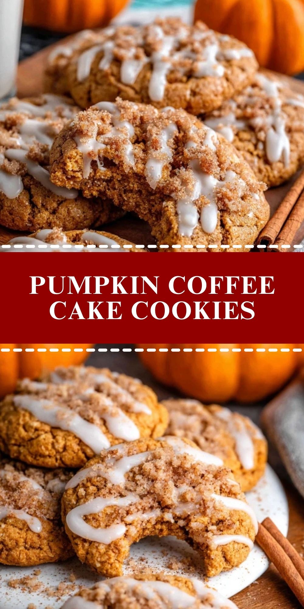 Pumpkin Coffee Cake Cookies are the ultimate fall treat—soft, spiced, and topped with buttery streusel and a dreamy vanilla glaze. Imagine the cozy essence of a classic coffee cake, but in handheld cookie form, infused with pumpkin puree and warm spices that make every bite taste like autumn.