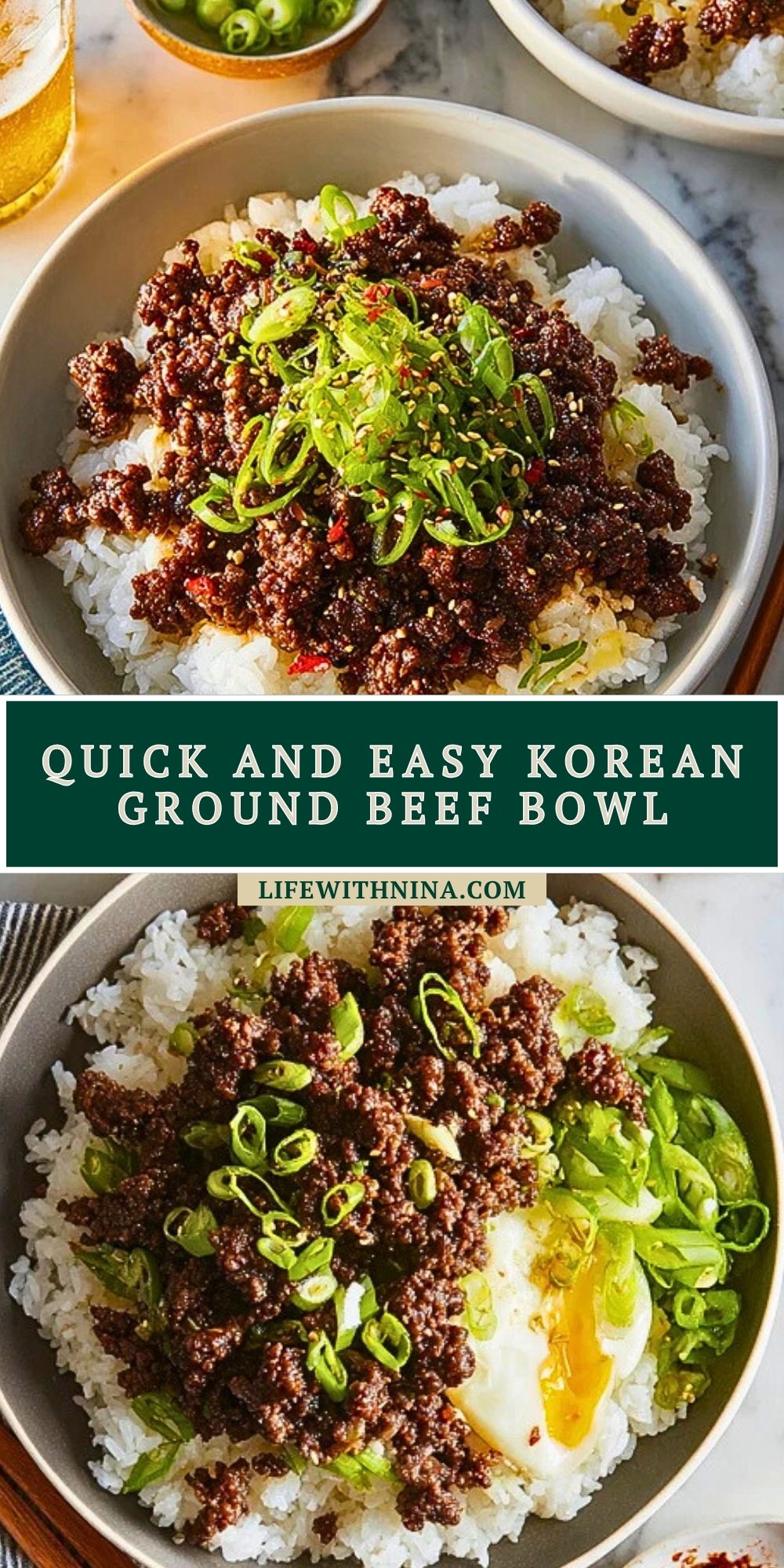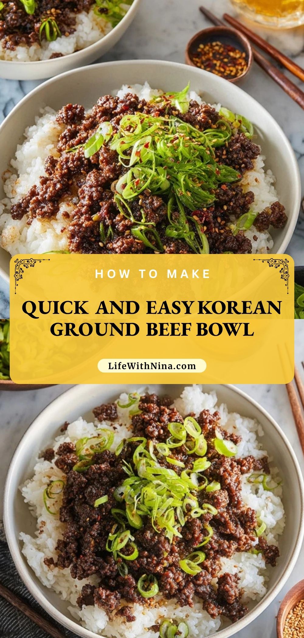 Keywords: quick dinner, easy rice bowl, ground beef recipe, Korean beef bowl, weeknight meals