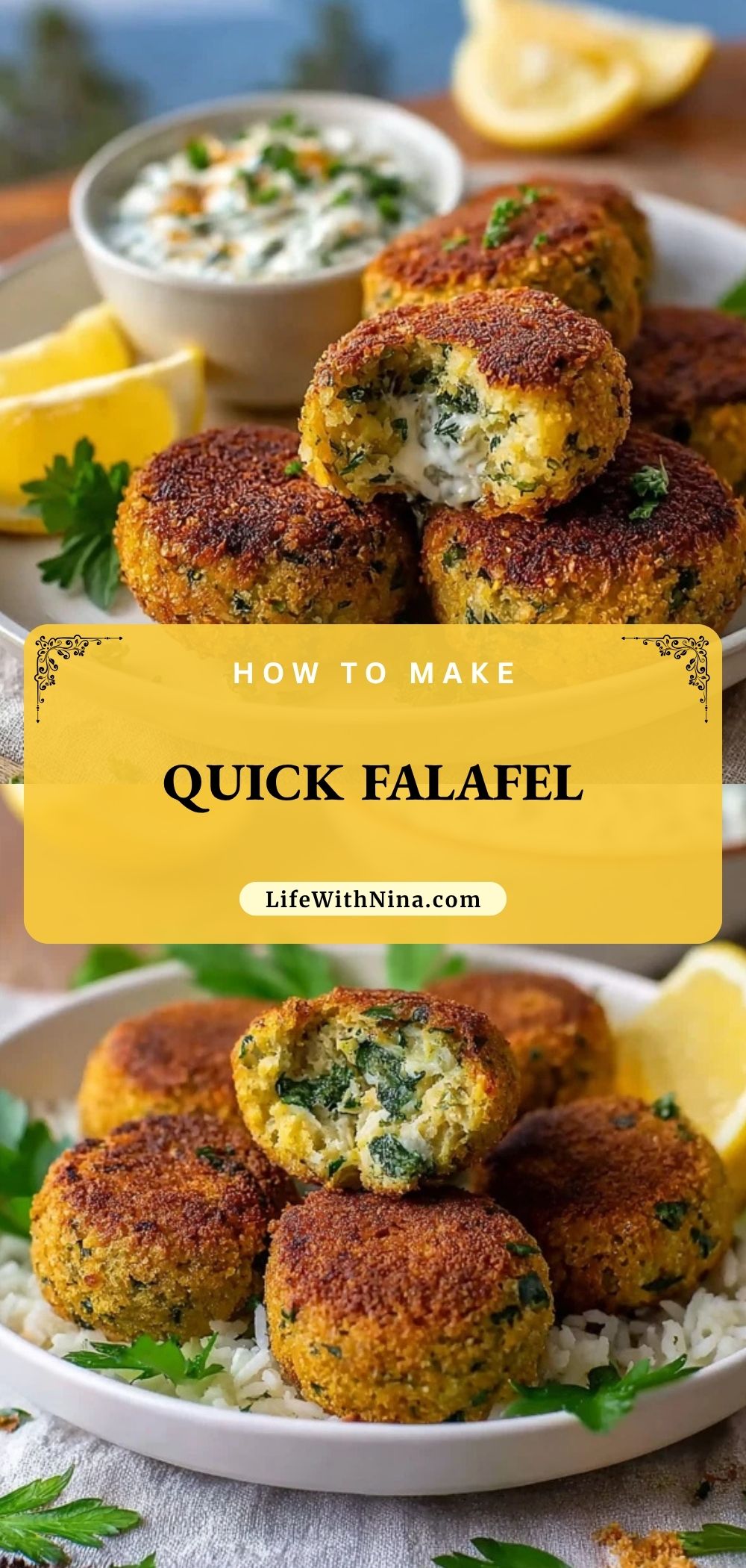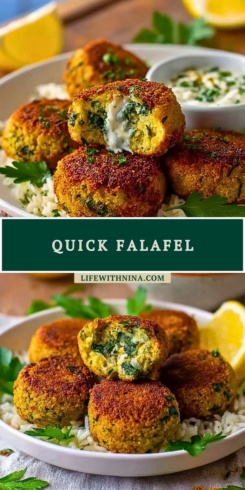 Crispy, golden, and full of fresh herb flavor, this Quick Falafel is an easy recipe that works for a quick lunch, easy dinner, healthy snack, or simple meal prep. Made with chickpeas, parsley, garlic, and warm spices, these patties cook fast and deliver bold Mediterranean flavor with a tender center and crisp outside. Serve them in pita, over salad, or with rice for one of those versatile food ideas that fits busy weeknights, light dinner ideas, and easy homemade meals.