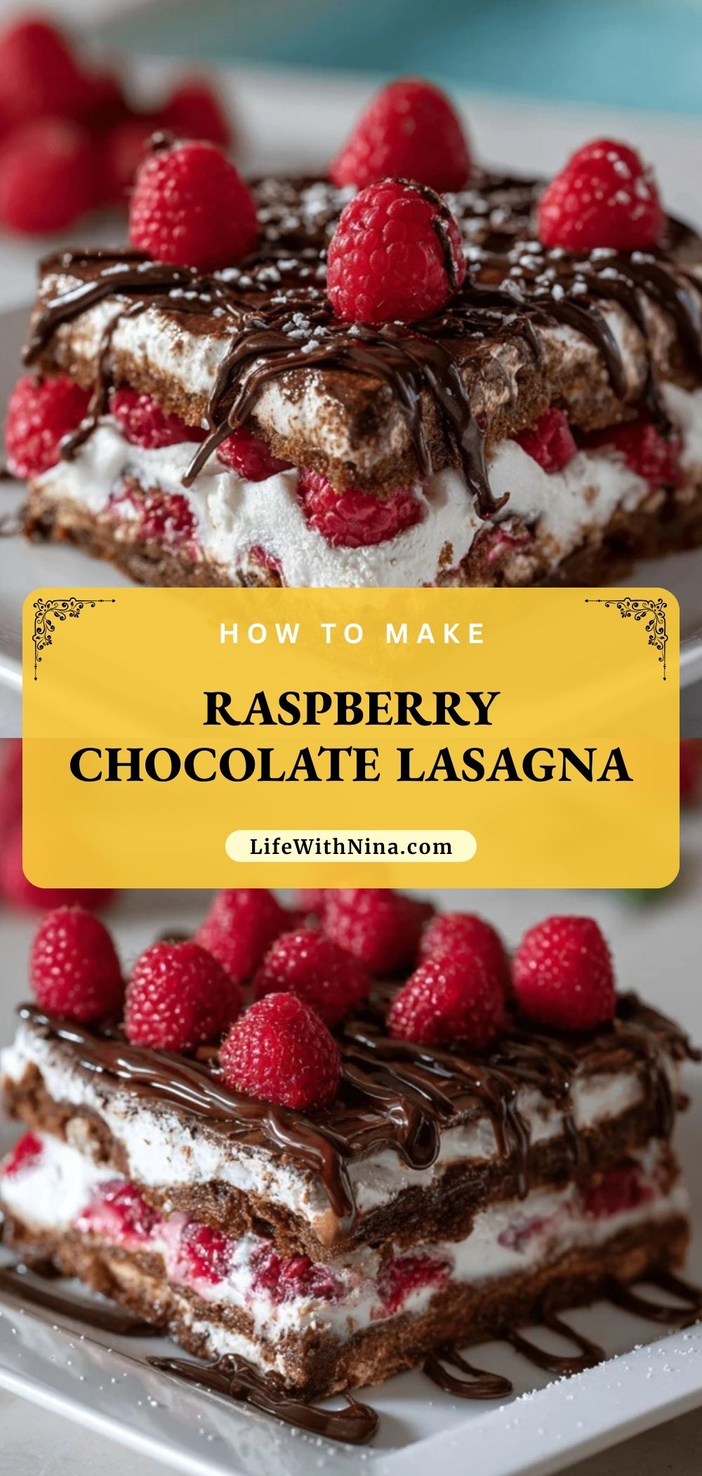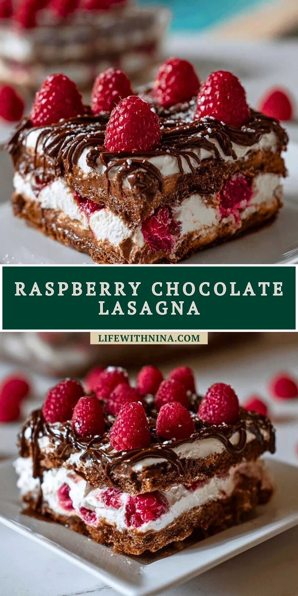 Keywords: no-bake lasagna, chocolate raspberry dessert, whipped cream dessert