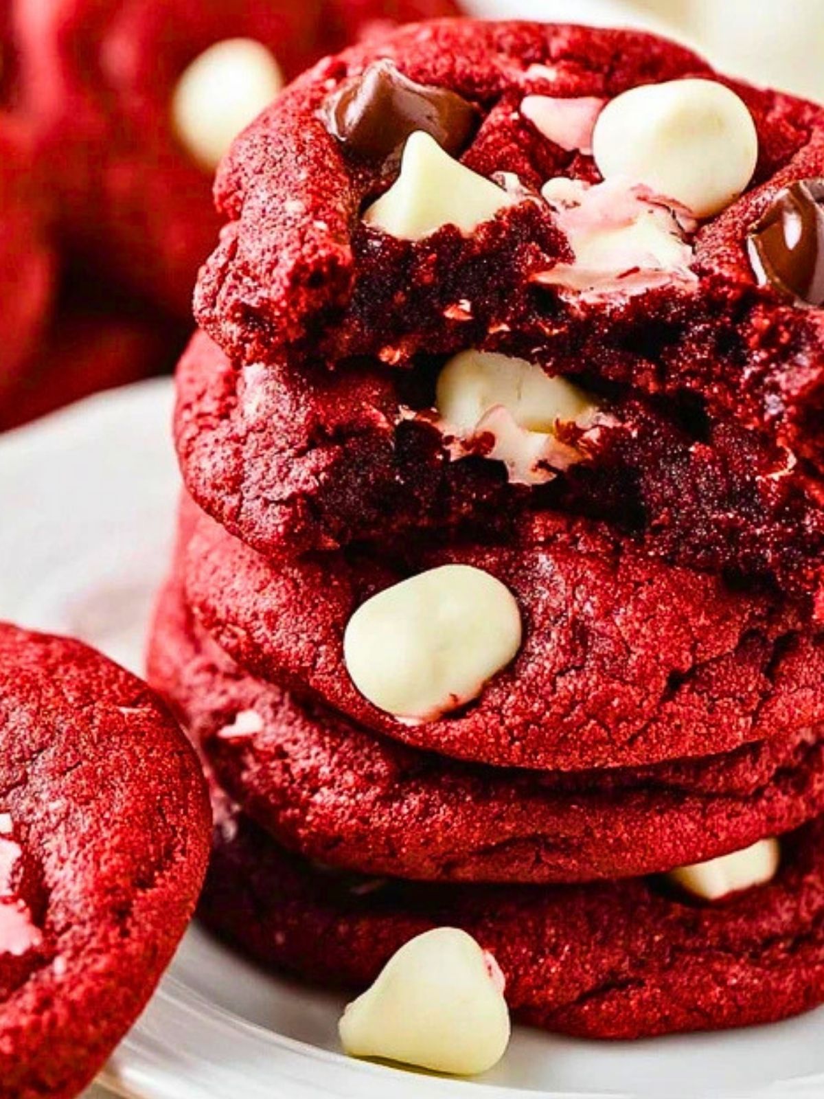 These red velvet Valentine cookies are the kind of homemade treat that instantly makes any dessert table feel more festive, fun, and a little extra special. They bake up soft and rich with that classic red velvet flavor, then get even better with melty white chocolate chips and a bakery-style center that looks as good as it tastes.