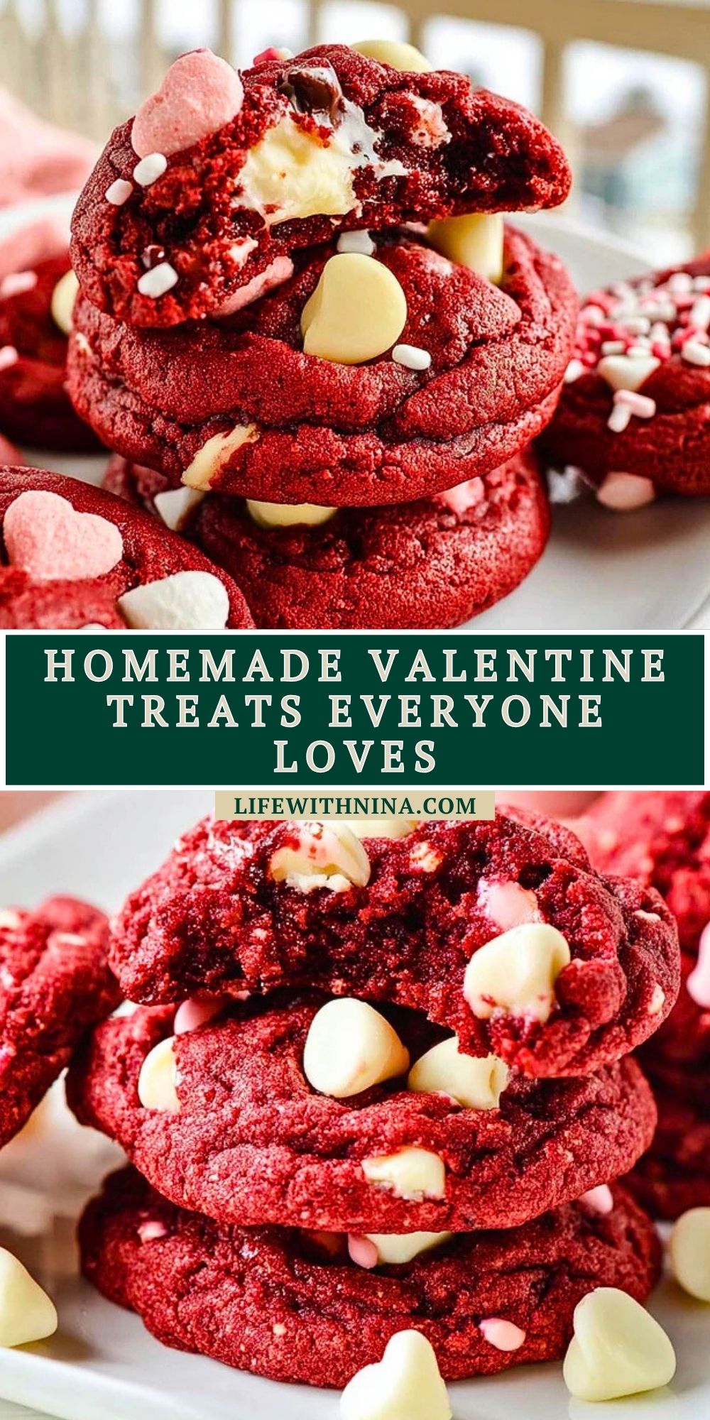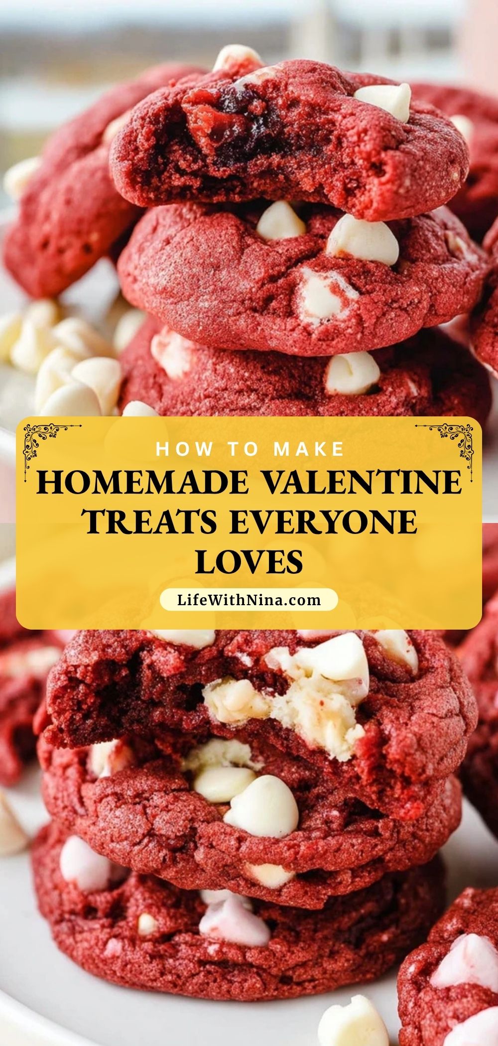 Keywords: red velvet cookies, valentine cookies, homemade valentine treats, easy dessert, holiday baking, cookie recipe, dessert ideas, food ideas, easy recipe