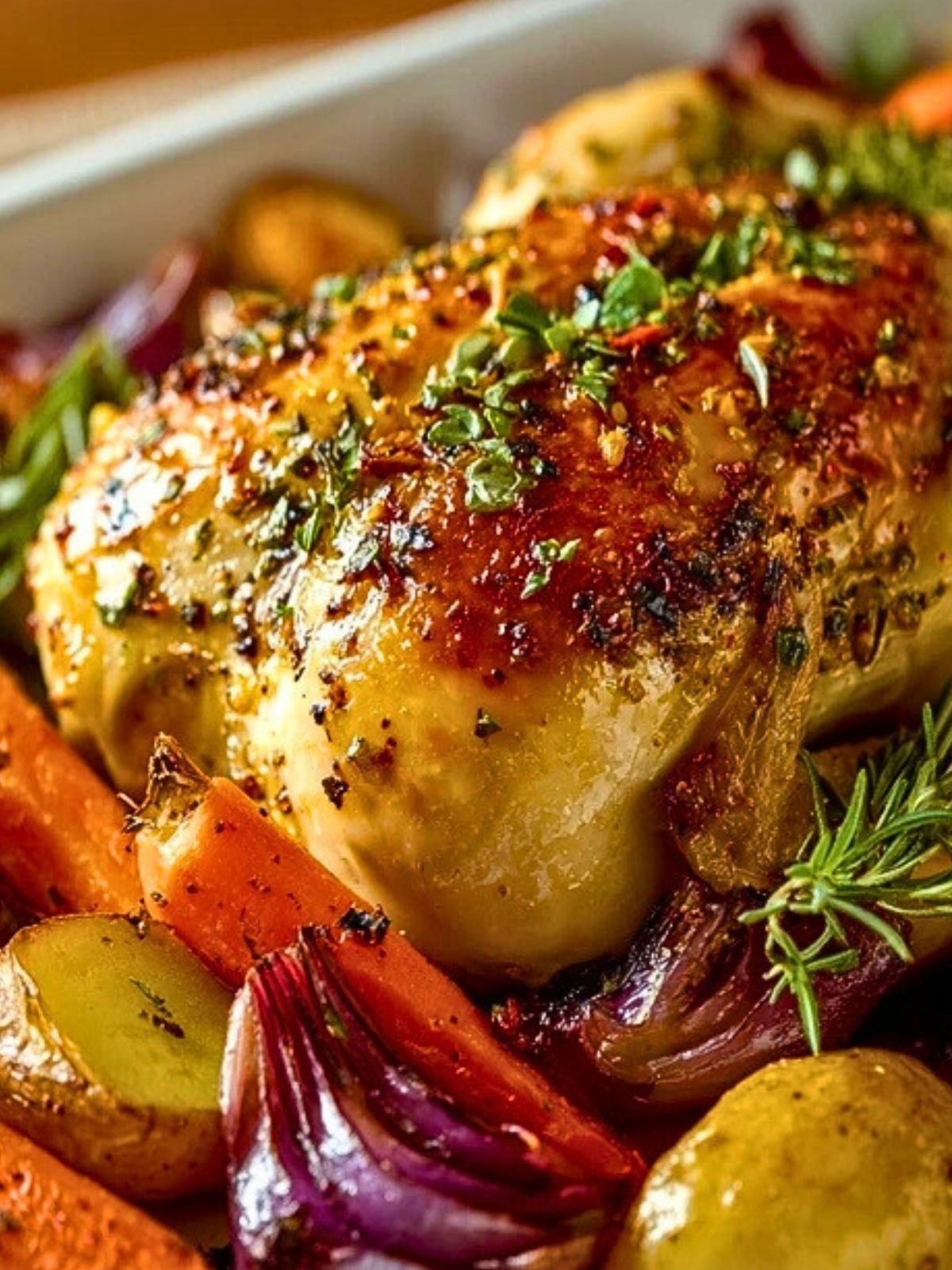 This Roasted Garlic Chicken and Vegetables is the ultimate one-pan dinner—juicy, golden chicken surrounded by perfectly roasted carrots, red onions, and baby potatoes. Infused with roasted garlic and fresh herbs, it’s the kind of meal that delivers bold flavor with minimal cleanup. Ideal for weeknight dinners or hearty Sunday suppers.