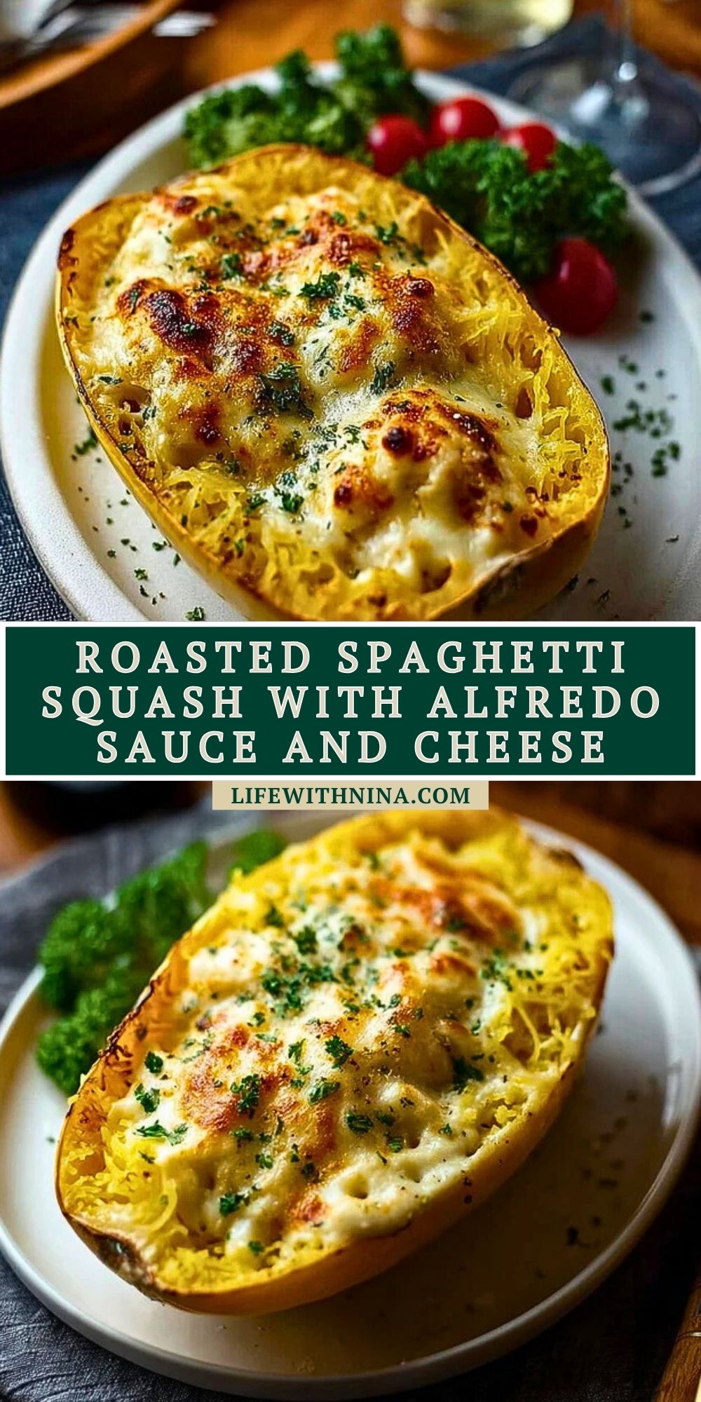 Keywords: spaghetti squash, Alfredo, low-carb dinner