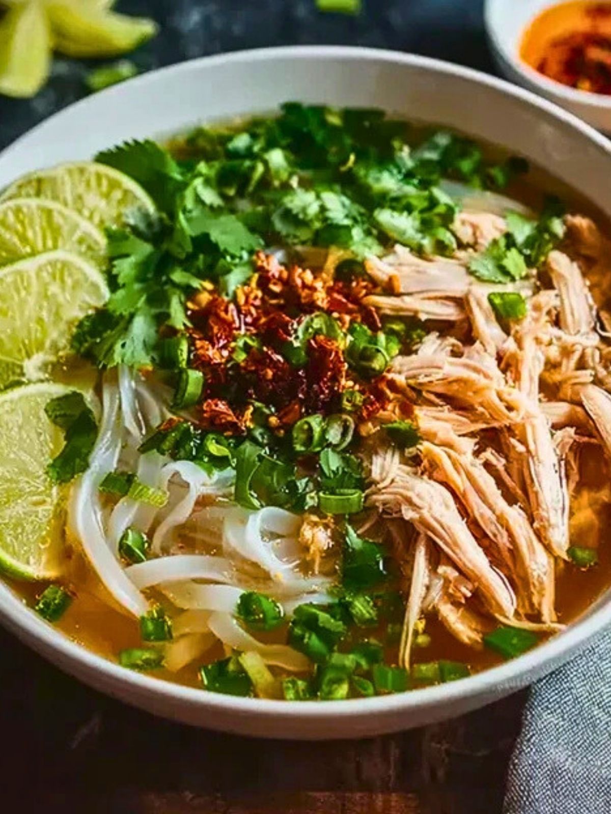 This fast-track version of classic Vietnamese pho uses rotisserie chicken for ease without losing its deep, comforting flavors. The fragrant broth, silky noodles, and fresh toppings make it a soul-warming meal any night of the week.