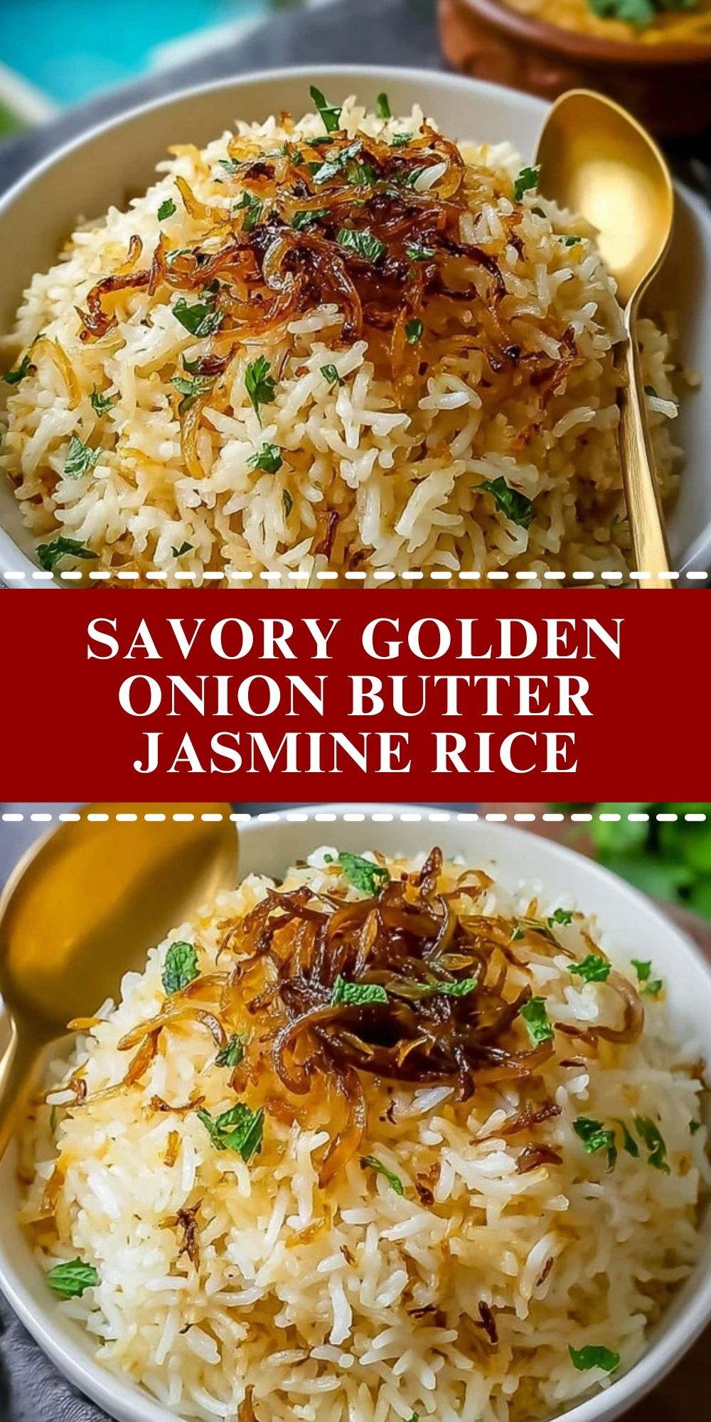 Golden, buttery, and kissed with caramelized onions, this Savory Golden Onion Butter Jasmine Rice is the kind of side dish that effortlessly steals the show. Whether paired with a hearty protein or served on its own with a dollop of yogurt or crispy egg on top, it delivers comfort and elegance with every bite. The jasmine rice provides a lightly floral aroma and soft, fluffy texture that’s irresistible.