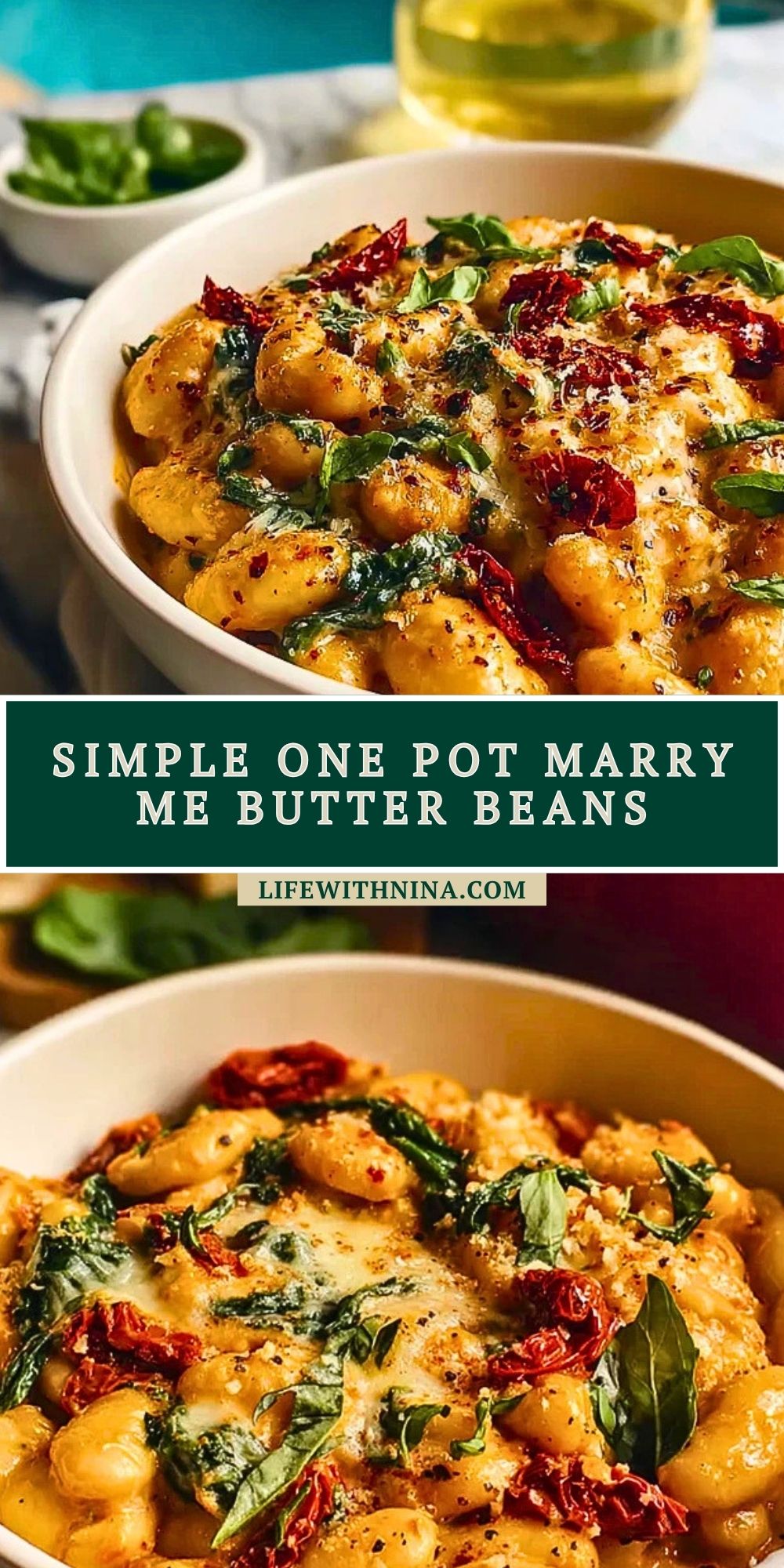 Simple One Pot Marry Me Butter Beans is a rich, creamy, easy dinner packed with tender butter beans, sun dried tomatoes, spinach, garlic, and parmesan in one cozy skillet. This easy recipe is perfect for quick dinner nights, simple comfort food cravings, meatless dinner ideas, and satisfying food ideas when you want something hearty with very little cleanup.