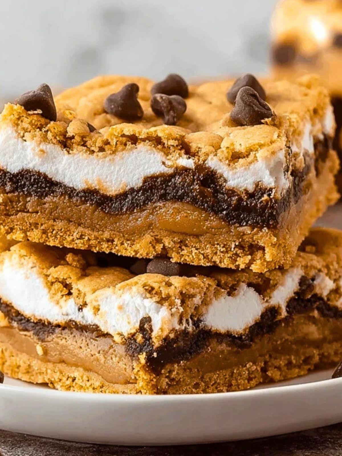 Keywords: s’mores, cookie bars, chocolate marshmallow, easy dessert