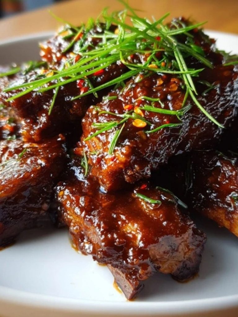 The sauce is where the magic lies: a blend of hoisin, soy sauce, garlic, ginger, honey, and a touch of chili flakes brings that crave-worthy Asian flavor profile that hits all the right notes. The meat is slow-cooked until it’s fall-off-the-bone tender, then broiled to develop that glossy, sticky finish. Garnished with scallions or chives, this dish is rustic, rich, and oh-so-satisfying.