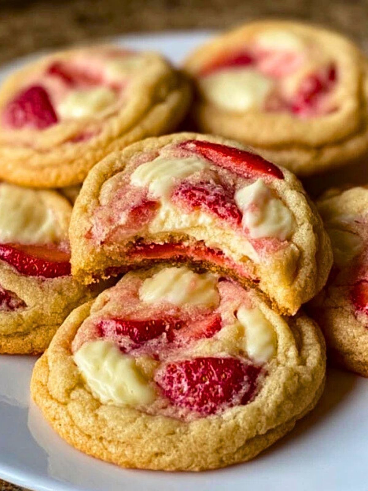 Perfect for spring gatherings, cozy nights in, or gifting something special, these cookies offer a bakery-style surprise in every bite. They combine the comforting simplicity of classic cookies with the lush creaminess of strawberry cheesecake. Get ready to be obsessed.