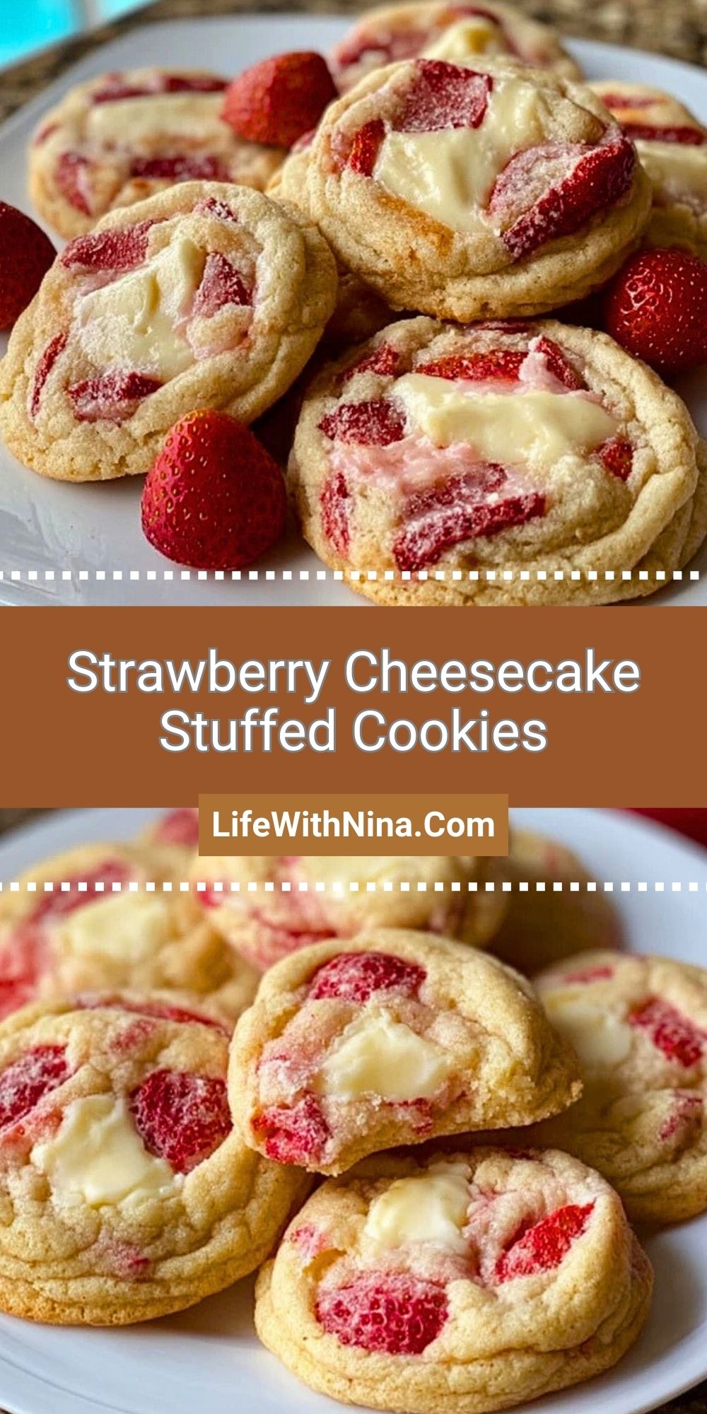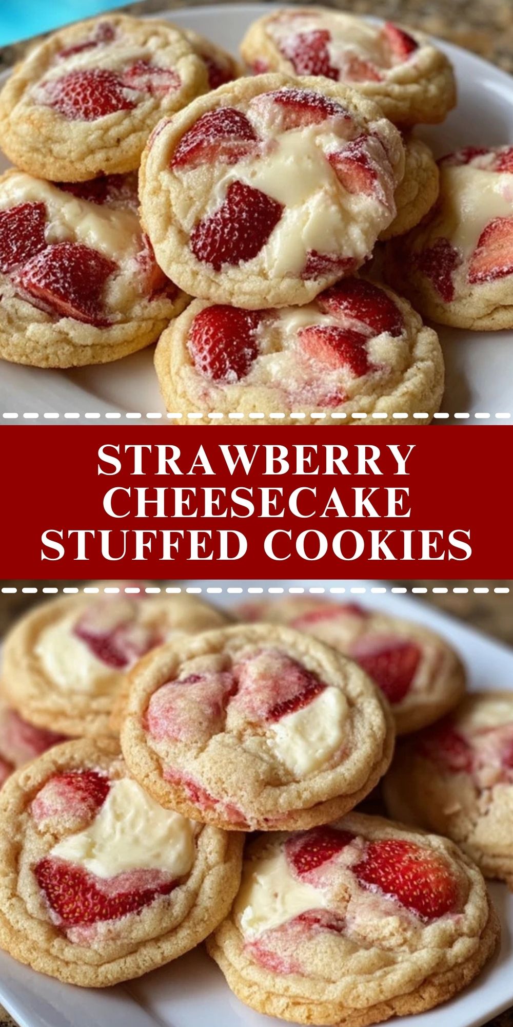 Strawberry Cheesecake Stuffed Cookies are best served fresh, slightly warm so the center stays creamy and soft. If you’ve just baked a batch, give them 10 minutes to rest on the baking sheet, then dig in with a cold glass of milk or a hot cup of tea.