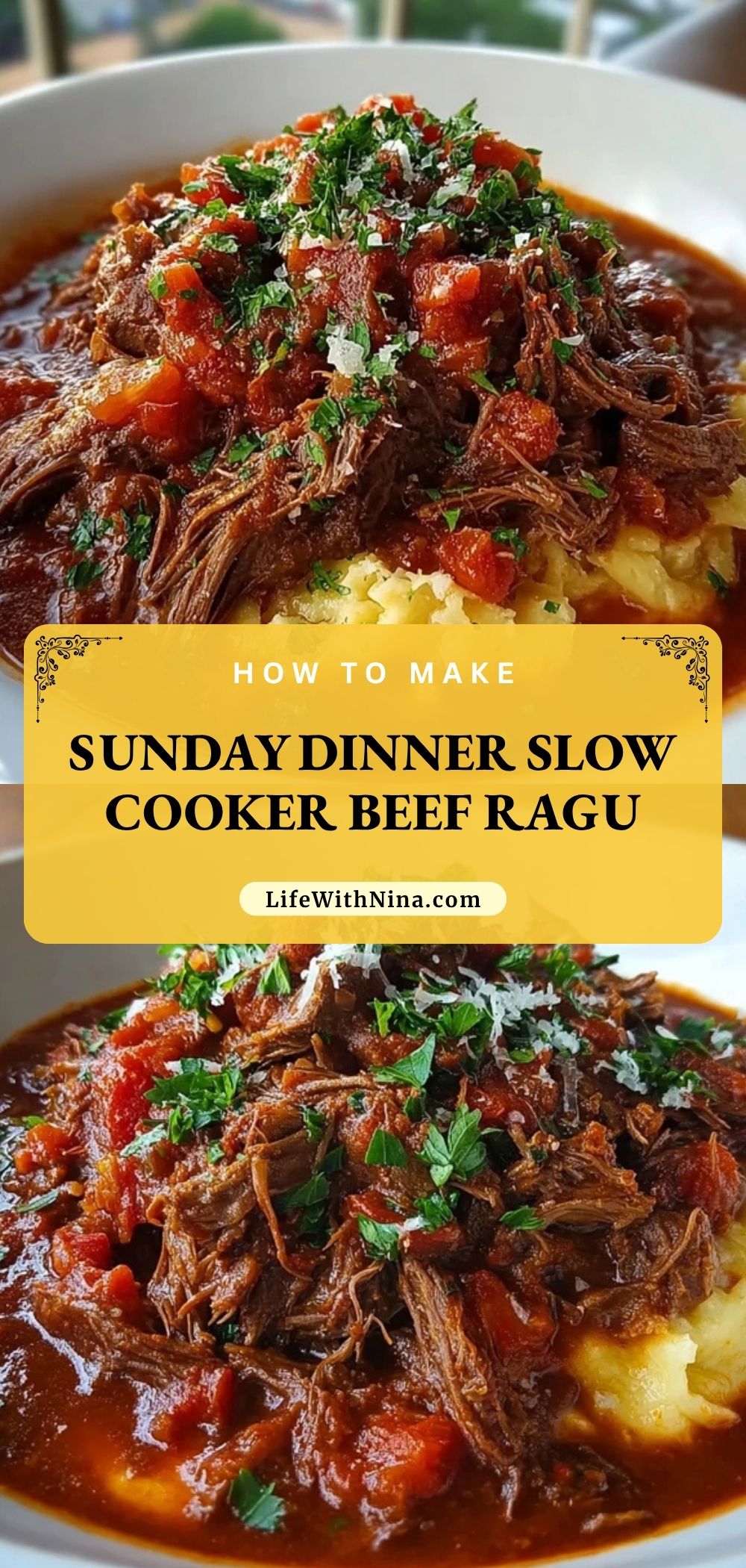 Keywords: Sunday dinner, slow cooker beef ragu, beef ragu, easy dinner, comfort food, family dinner ideas, shredded beef recipe, crockpot dinner