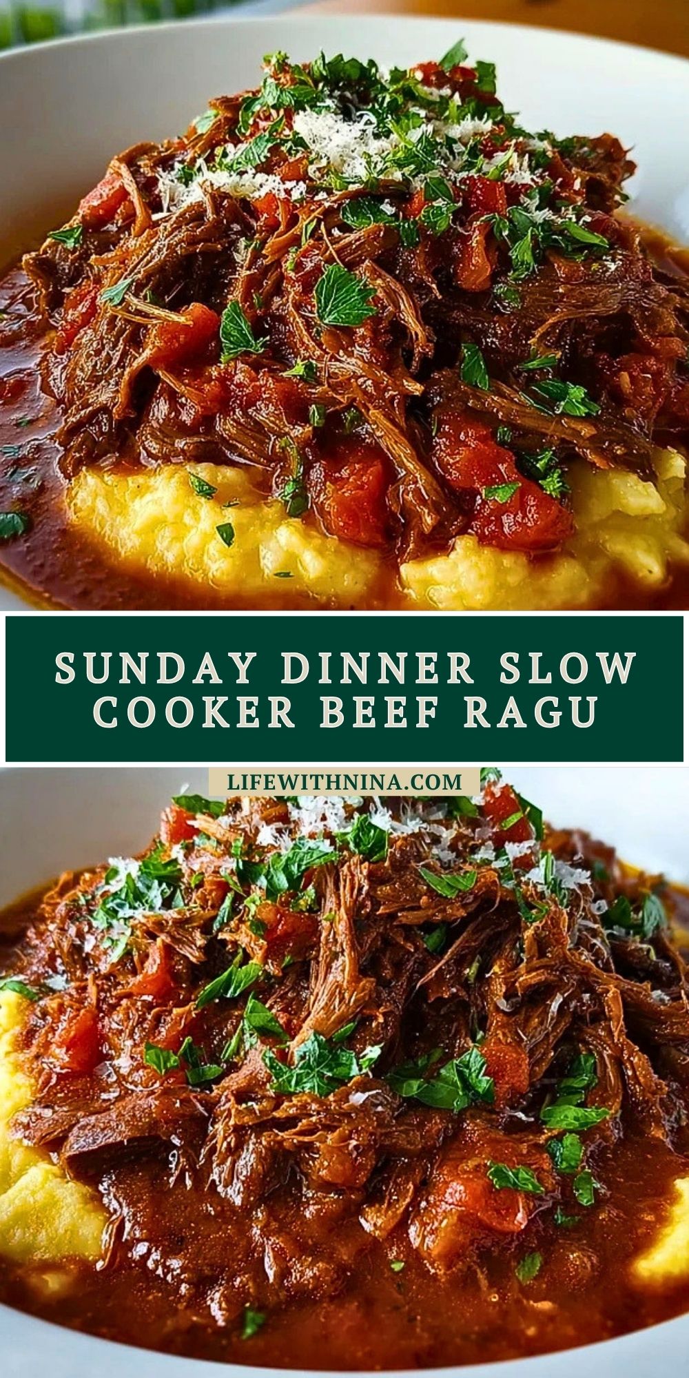 Sunday Dinner Slow Cooker Beef Ragu is the kind of easy dinner that turns simple ingredients into a rich, cozy comfort meal. This hearty beef recipe features tender shredded chuck roast simmered in a slow cooker with tomatoes, garlic, onion, and herbs for a flavorful sauce that is perfect over creamy polenta, mashed potatoes, or pasta. It is a great choice for Sunday dinner, family dinner ideas, easy recipe planning, and comforting food ideas when you want a satisfying homemade meal with very little hands-on work.