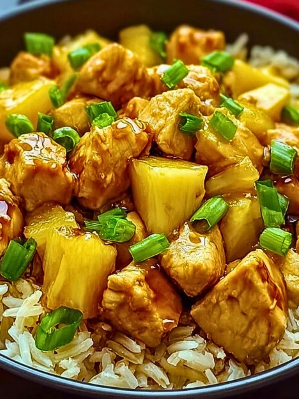 A comforting yet tropical-inspired dinner that combines tender chicken bites, juicy pineapple chunks, and a sweet-and-savory garlic soy glaze—served over fluffy rice. Quick to make, crowd-pleasing, and perfect for weeknights.