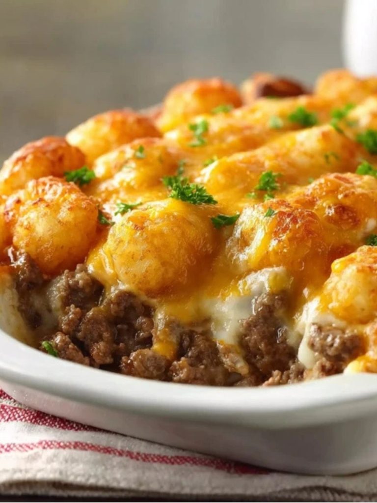 You can, but it’ll change both texture and cooking time. Tater tots are pre-cooked and designed to get that signature crispy edge when baked, which makes them ideal for this casserole. Fresh potatoes would need to be par-cooked or thinly sliced and may not deliver the same crunchy finish on top. If you’re after that nostalgic, golden crunch—stick with the tots!