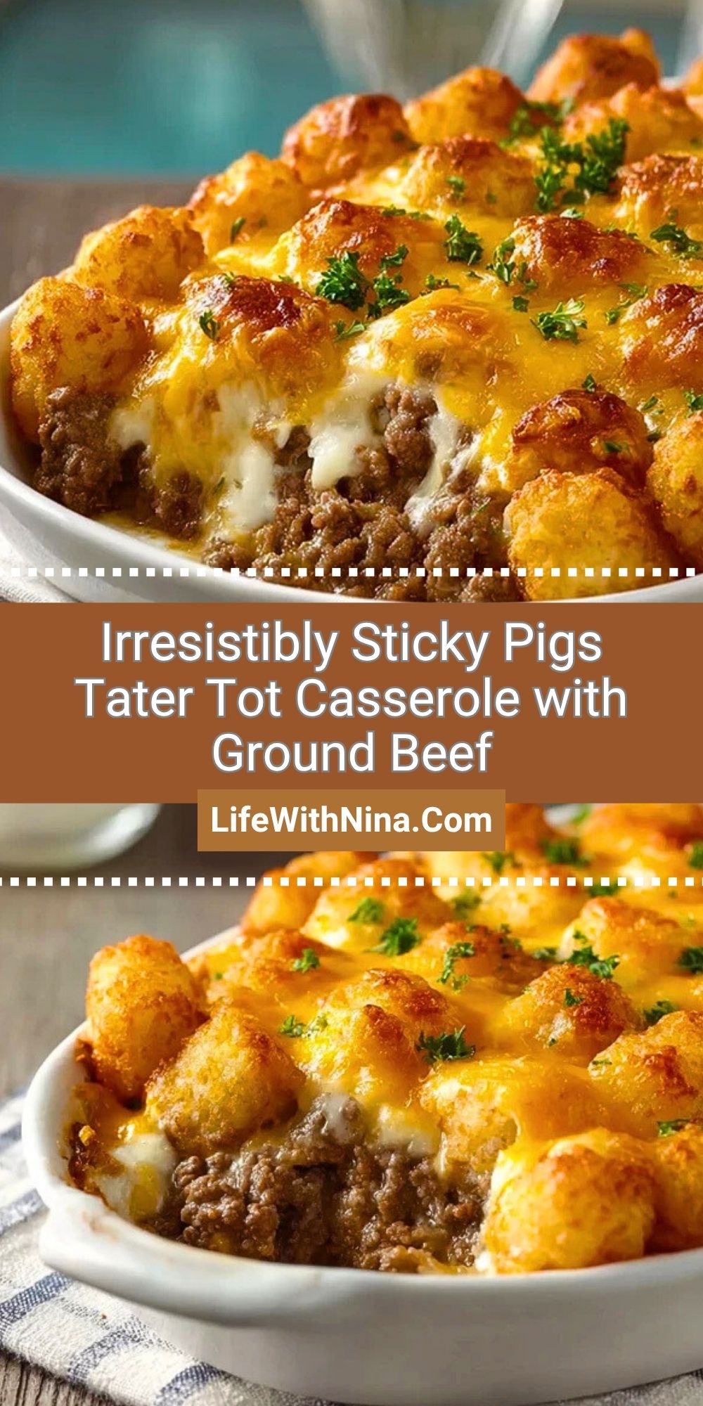 7. Bake uncovered for 35–40 minutes or until tater tots are golden and crispy.