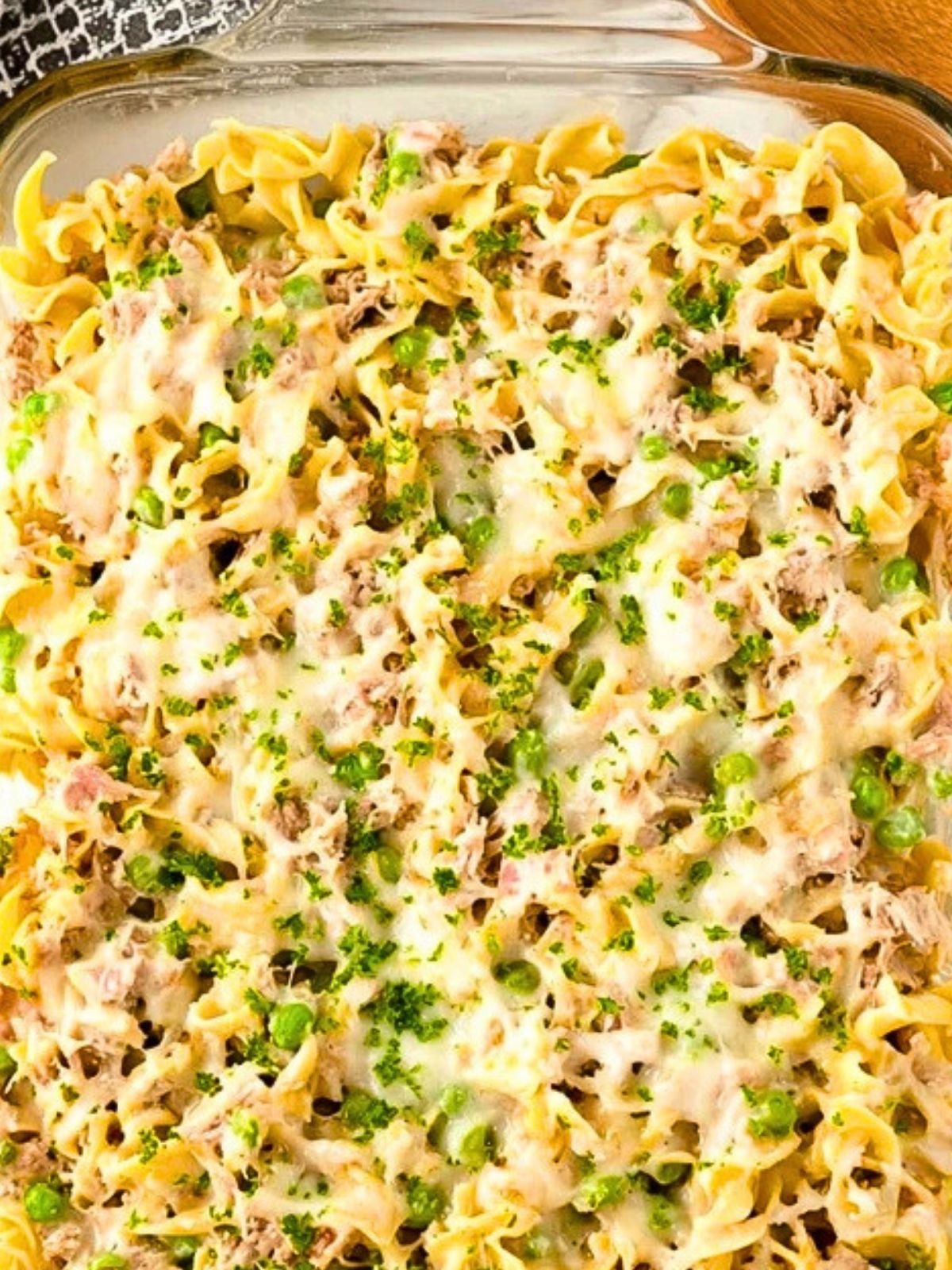 Tuna casserole is best served warm straight from the oven when the cheese is melty and the sauce is at its creamiest. It pairs well with a crisp green salad, roasted vegetables, garlic bread, or simple fruit on the side if you want to round out the meal. Because it is hearty on its own, it also works beautifully as a full one dish dinner.