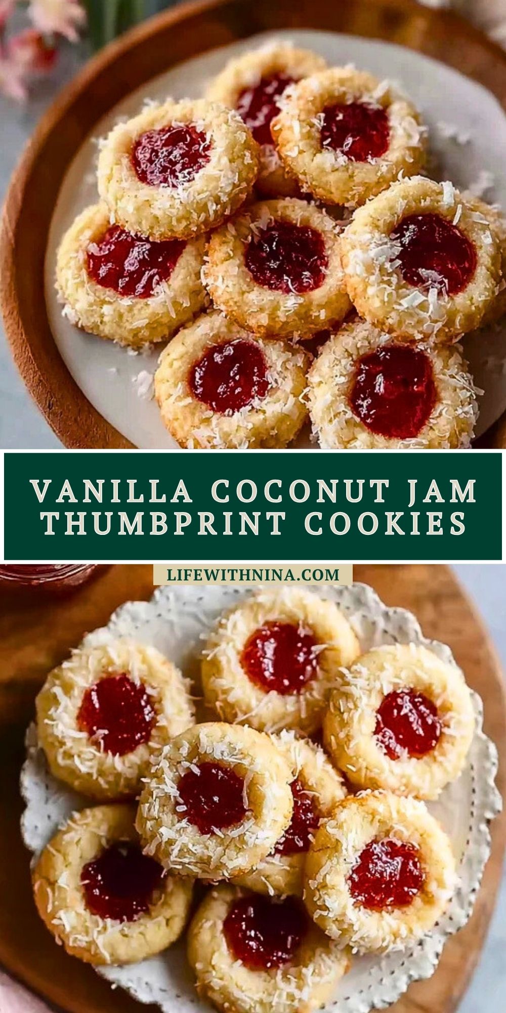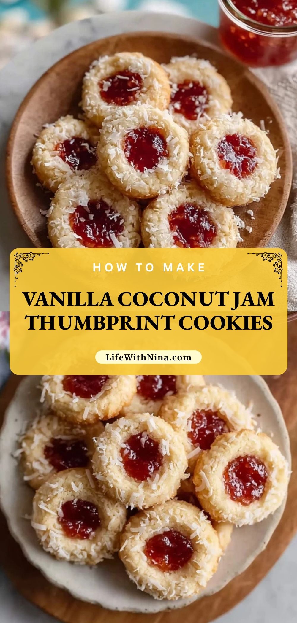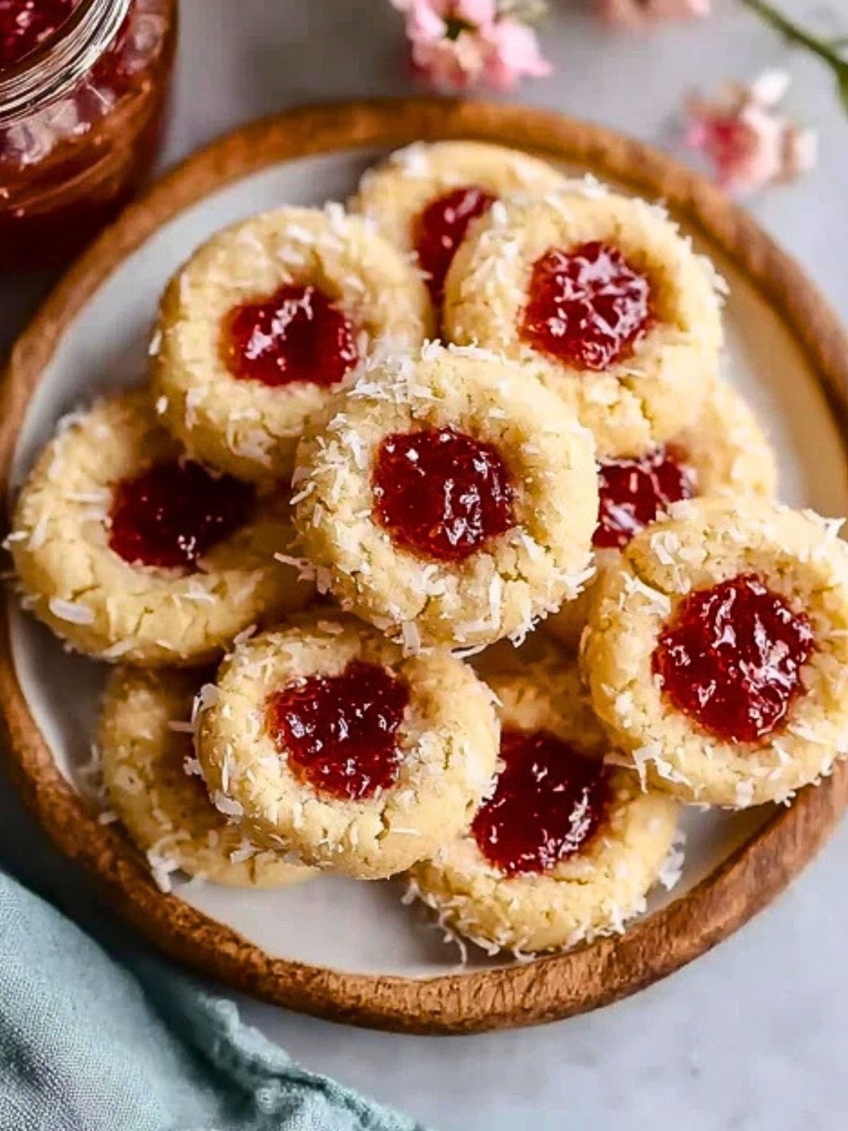 Vanilla Coconut Jam Thumbprint Cookies