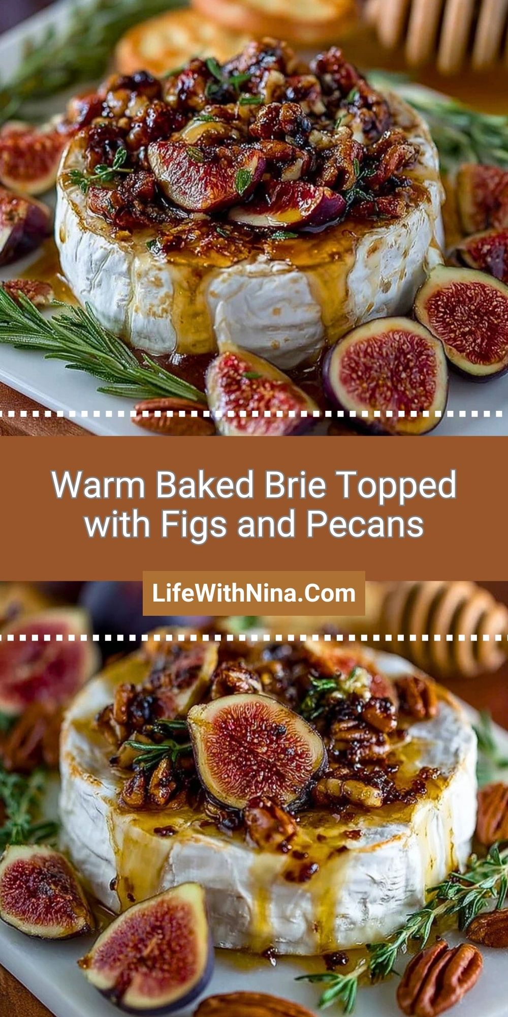 A creamy, gooey wheel of brie wrapped in sweet roasted figs, buttery pecans, and golden honey. This elegant appetizer is as easy as it is impressive—perfect for holiday spreads, date nights, or cozy gatherings.